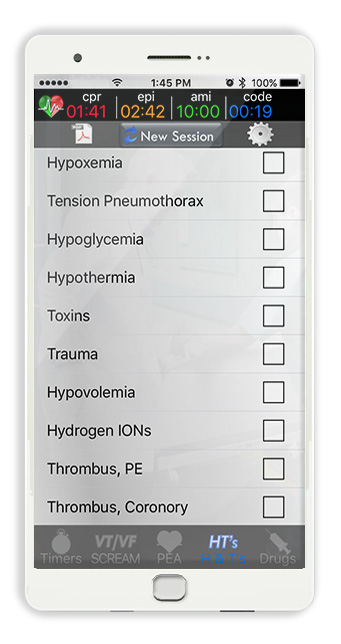 CARMA has four independent countdown timers, swipe-able Ventricular Tachycardia & Ventricular Fibrillation and Pulseless Electrical Activity (PEA) reference pages. There is a complete list of select-able Diagnostic Tips (H's and T's) and recommended medication and non-medication treatment solutions. CARMA is an invaluable, portable tool for healthcare professionals in the resuscitation of patients experiencing cardiopulmonary arrest.